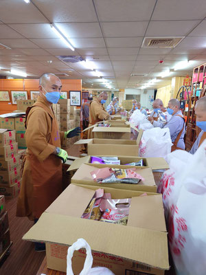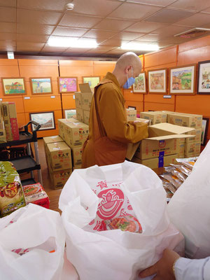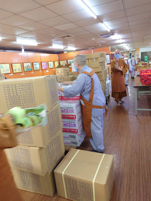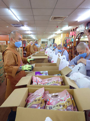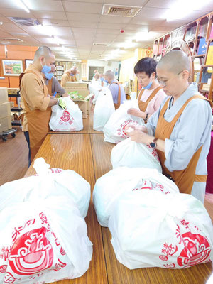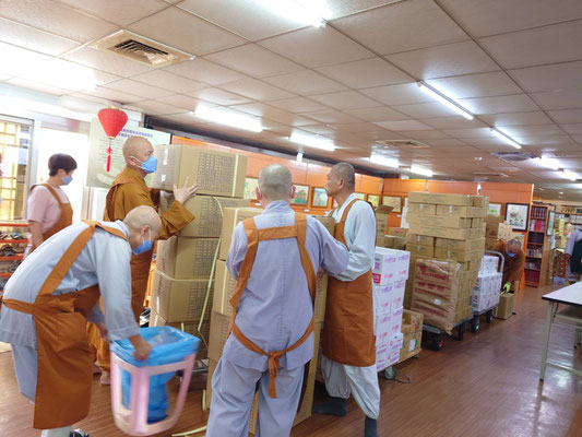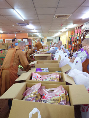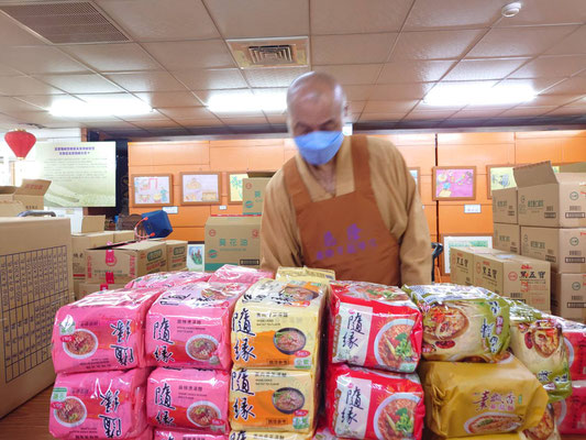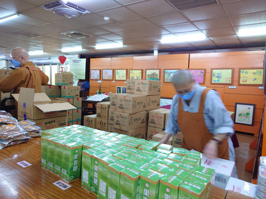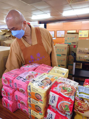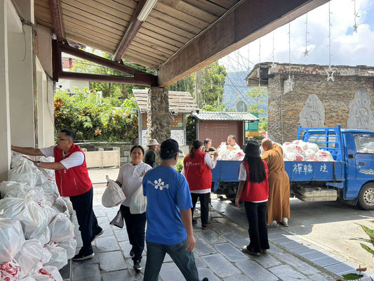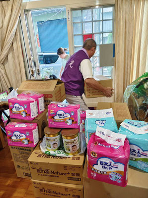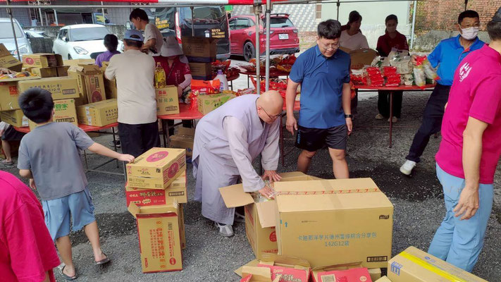本會收到消息後立即啟動救災功能,創會理事長 釋圓通法師緊急向『台糖公司』調動一批物資,包含白米、泡麵、麥片、黑糖、沖泡飲、飲品、罐頭、菜鬆等簡易食品。並由創會理事長 釋圓通法師、理事長 釋眾慈法師、理事 釋眾慧法師、阿蓮分會長 釋印謙法師帶領法輪禪寺法師們、志工師兄、師姐們與工作同仁在周末一天時間快速打包完成。