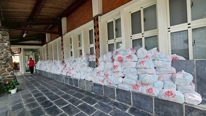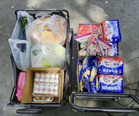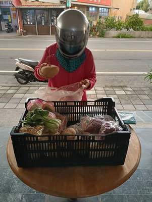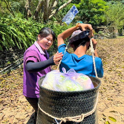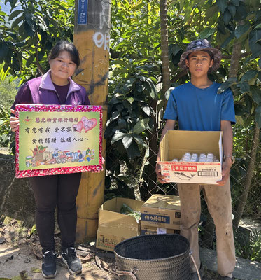 同時我們也為先前關懷的大社村居民,再準備一些生鮮食材、雞蛋、泡麵、沖泡飲、菜鬆、八寶粥等物資,讓居民背回部落備災。