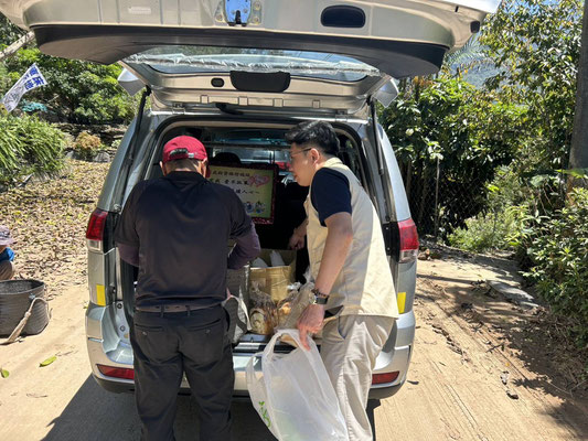 經社會處與鄉公所聯絡確認部落所需物資,除了簡易食品外希望能提供生鮮物資補給,在得知狀況後張科長尋求本會提供協助,經工作人員向理事長 眾慈法師說明情況,並討論後決定採買一批新鮮蔬菜和雞蛋等為他們補充營養,並從物資站提供泡麵和調理包。