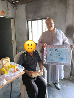 今天是一年一度的父親節在這溫馨感人的季節當天,本會理事長 釋眾慈法師、常務監事 林和貴、理事 李秋月、會員代表 黃月幸與工作同仁一起,將來自善心人士提供瑞士捲蛋糕、水果、麵包及飲品送給獨居男性長輩,讓他們一同感受到祝福與關懷。