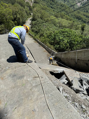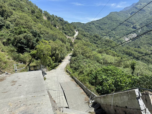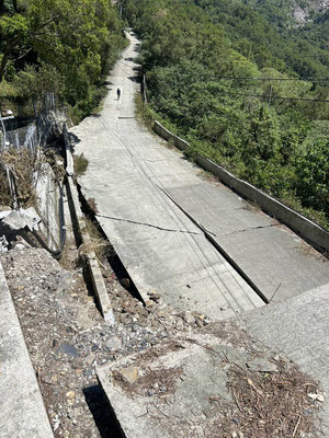 準備妥當後本會工作人員旋即與縣府張科長和公所呂課長一同前往災區,在通往大社部落的路上沿途都有被大雨摧殘過後的痕跡,除了滿地的落石和樹枝外,道路坍方的位置仍舊持續下陷中,只要再來一場暴雨部落聯外道路就會完全中斷成孤島。