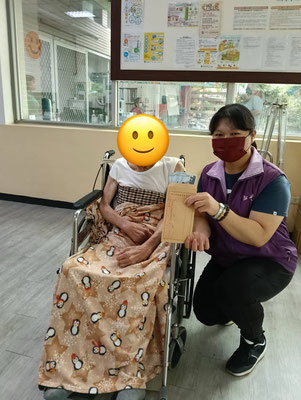 同時由善心人士分享自己製作蛋糕,以及本會準備的康乃馨和波蜜果菜汁、八寶粥等裝成一份,親自送到長輩家中並陪伴聊天,讓她們感受到來自社會各界的祝福與關懷。