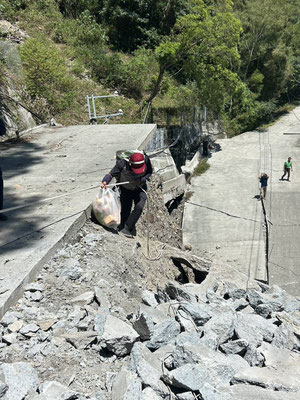 本會近日接到屏東縣政府社會處張科長的電話,表示三地門大社部落因道路嚴重受損坍方、路面陷落高低差達三層樓車輛無法通行,導致有二十幾位居民受困其中,須由部落青年徒步出來用竹簍運補物資。